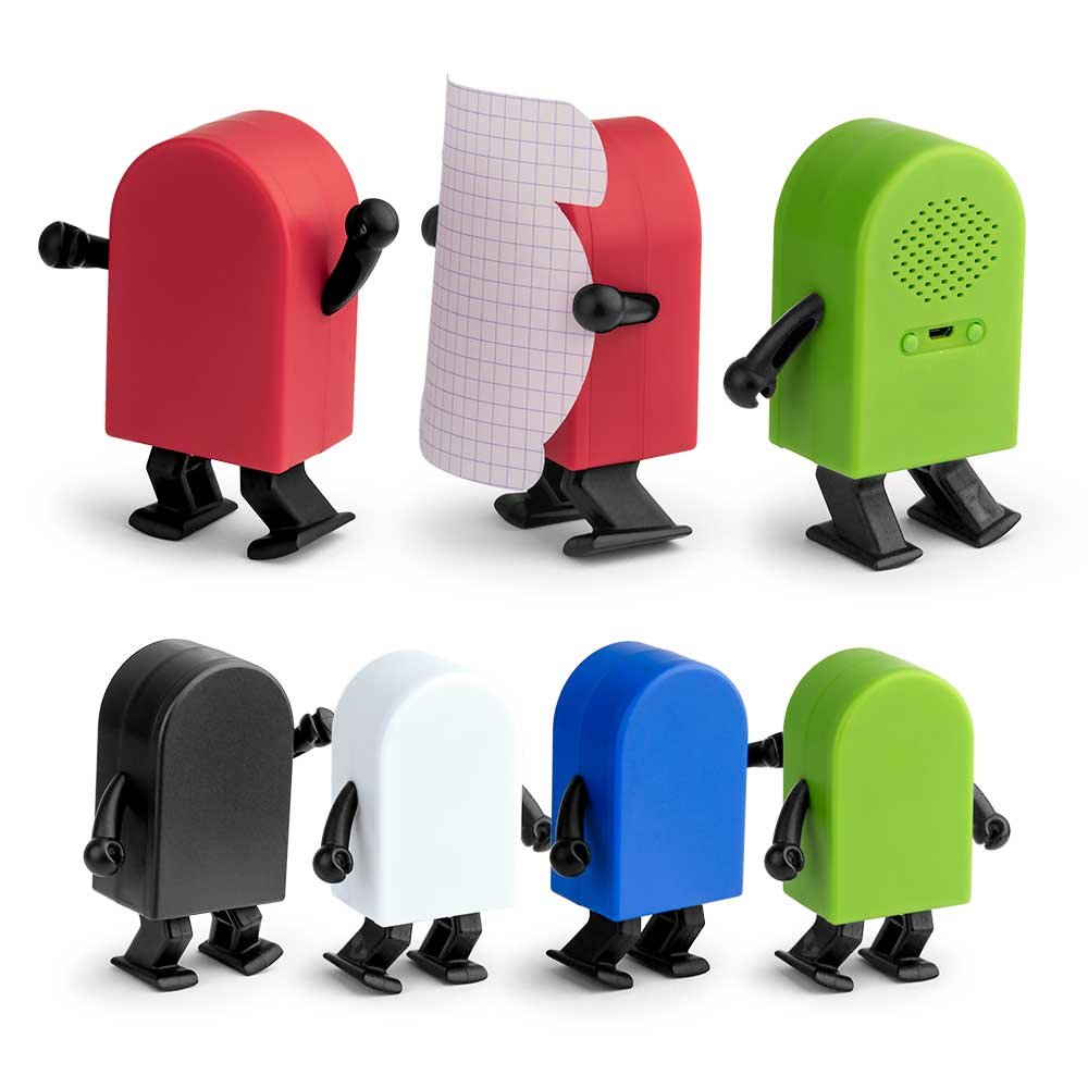 Altavoz interactivo de una bocina con extremidades que dan apariencia de baile al reproducir el sonido. Incluye cable de carga USB/ Micro USB. Potencia de entrada 5V, tiempo de reproducción 1 hora a todo volumen. Tiempo de carga 2 horas aproximadamente, incluye luz indicadora de carga.