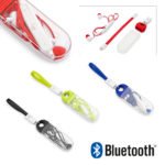 Audífonos intraaurales Bluetooth V4.2, batería de litio 55 mAh, tiempo de carga: 1-2 horas aprox. Tiempo de reproducción 3-5 horas, tiempo de pausa 100 horas, distancia 10m aprox. Con estuche plástico, Incluye micrófono y control de volumen para utilizarlo como manos libres. El cable de carga USB funciona como aro de llavero.