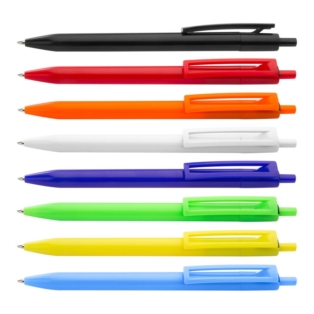 Bolígrafo retráctil con cuerpo de color sólido, clip con cavidad rectangular.