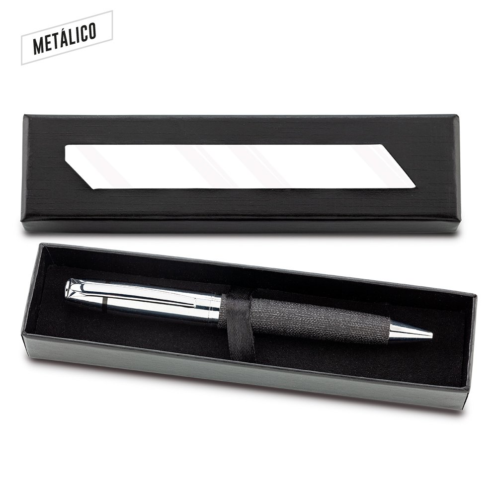 Bolígrafo metálico en estuche de cartón. Mecanismo Twist. Empaque caja individual.