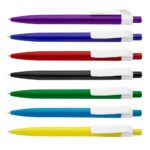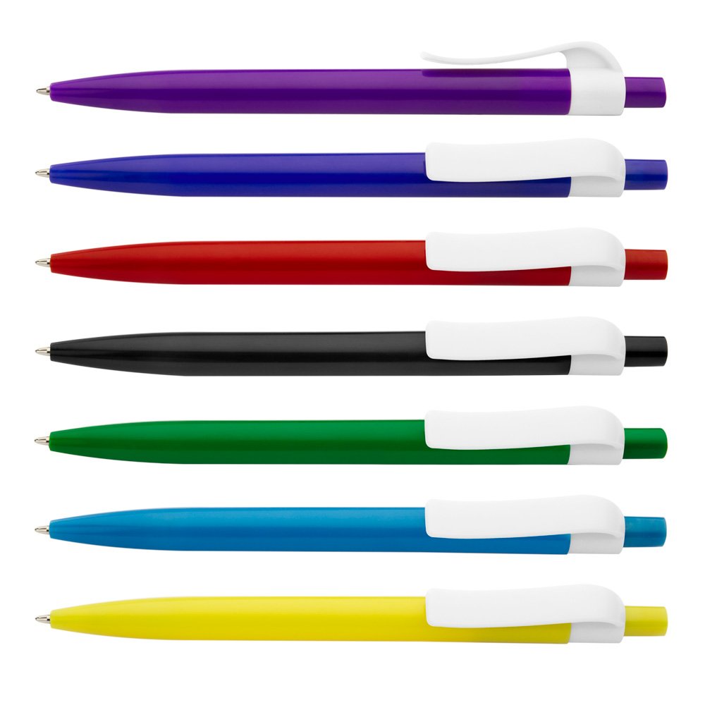 Bolígrafo retráctil con cuerpo de color sólido y clip blanco.