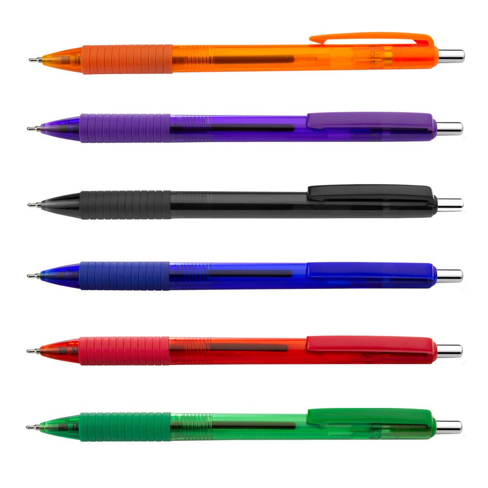 Bolígrafo plástico con sistema de apertura retráctil, color traslucido, antideslizante sólido. Tinta especial de 1,0 mm, de baja viscosidad.