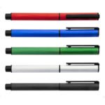 Bolígrafo con tapa, punta y clip de color negro, acabado mate. Tinta tipo Gel.