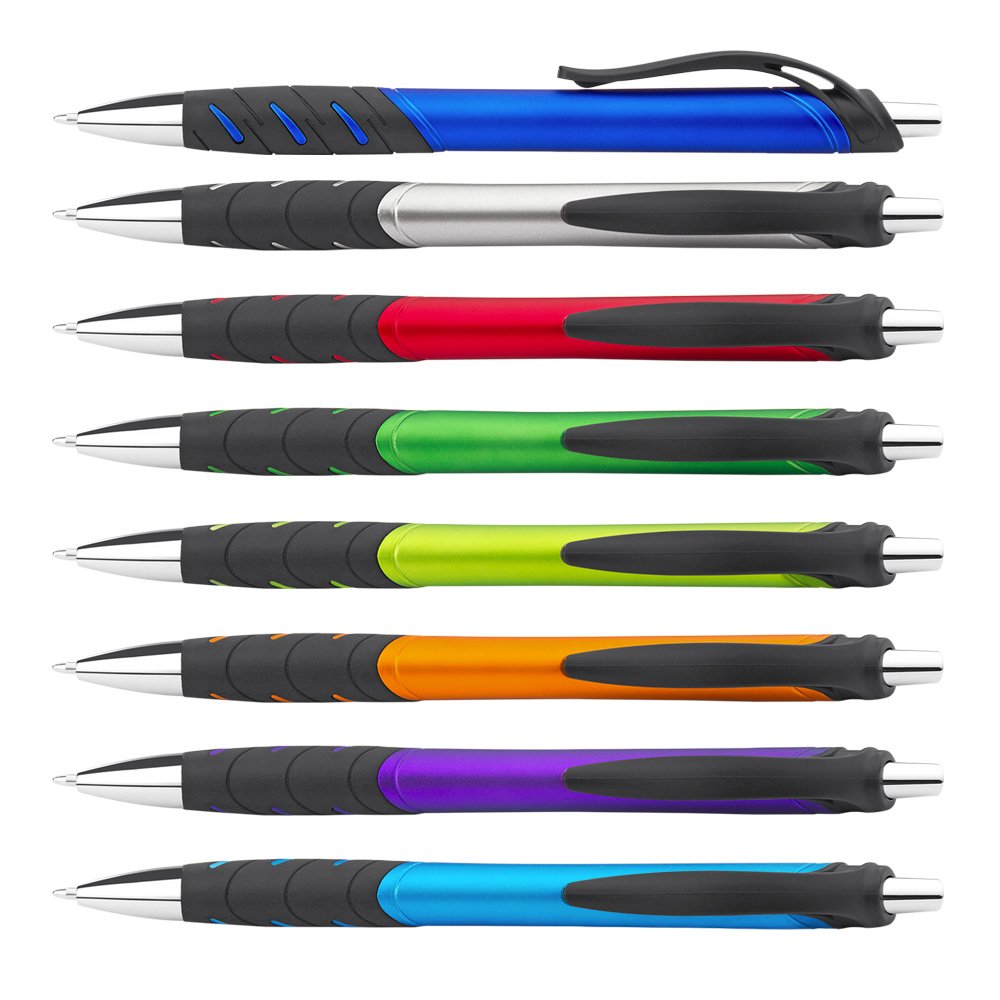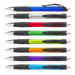 Bolígrafo plástico con sistema de apertura retráctil, color sólido, clip y antideslizante de color negro.
