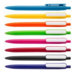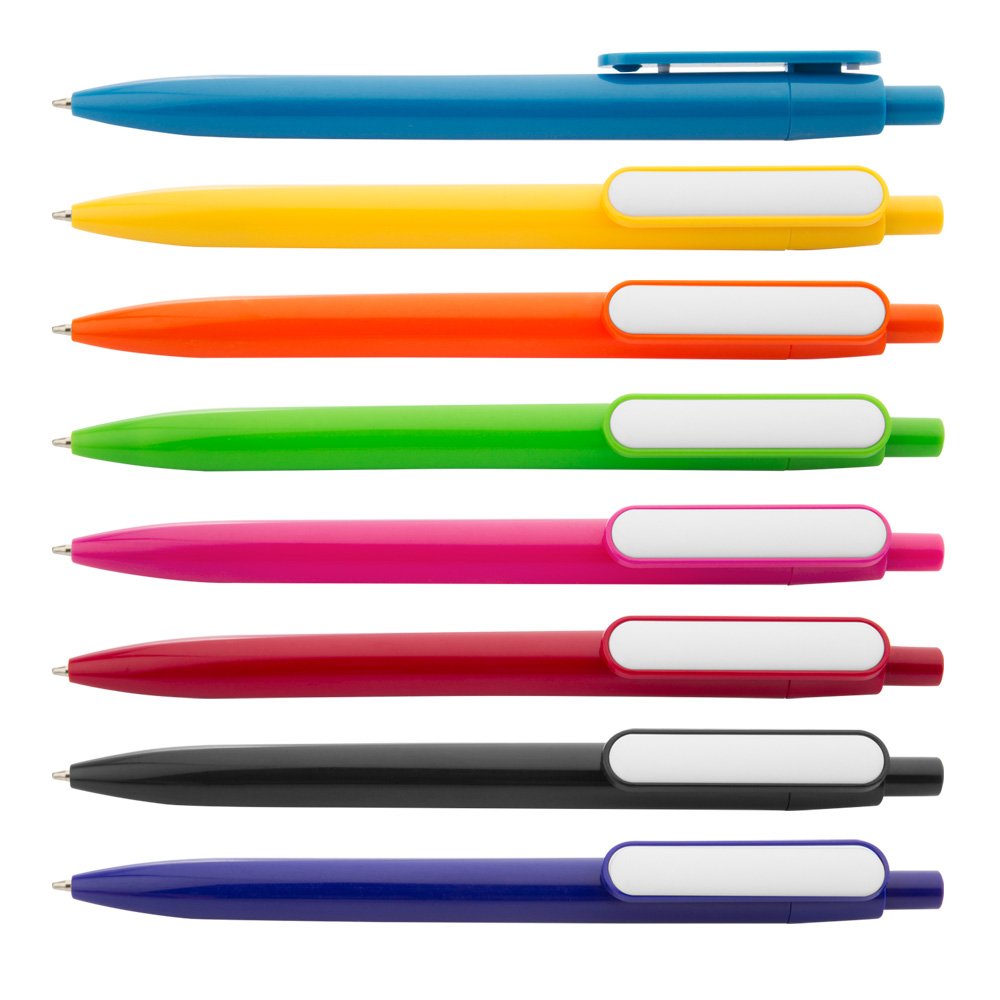 Bolígrafo plástico retráctil de color sólido y clip blanco.