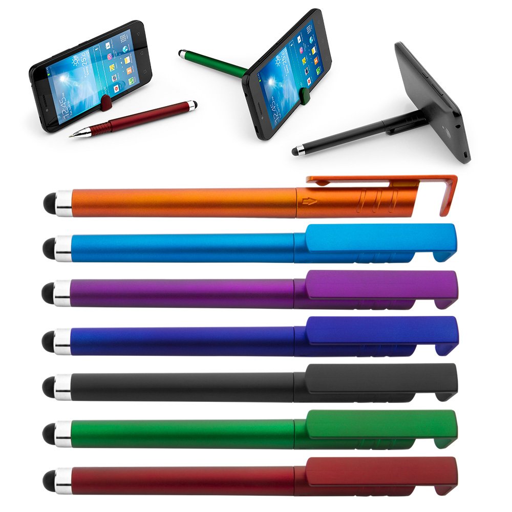 Bolígrafo plástico con acabado mate incluye holder y stylus para dispositivos de pantalla táctil. Sistema de apertura con tapa, tinta de gel.