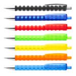 Bolígrafo retráctil de color traslucido, punta plateada, recubrimiento del barril removible. Mina tipo Jumbo.