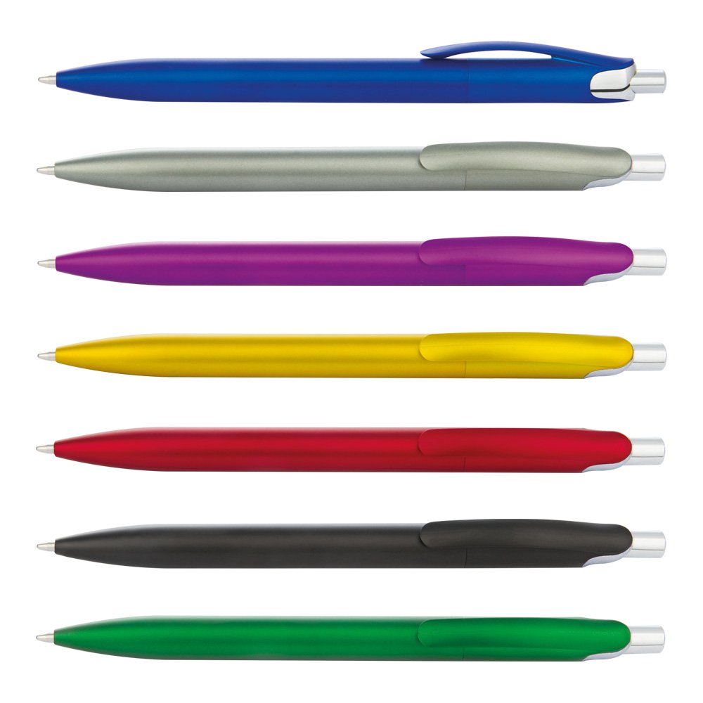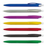 Bolígrafo plástico con acabado mate y sistema de apertura retráctil.