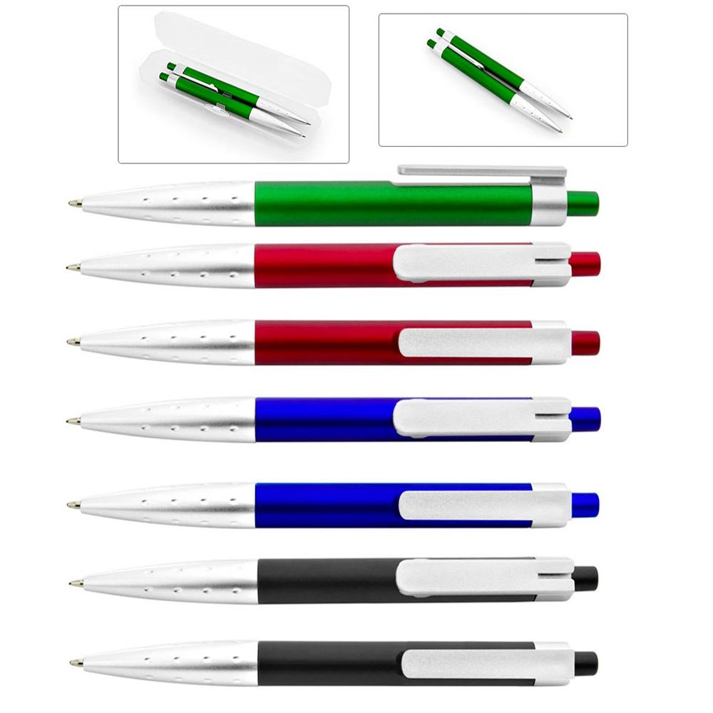Set de bolígrafo y portaminas mina 0,5 mm. Con acabado mate, punta y clip plateados. En estuche plástico transparente.
