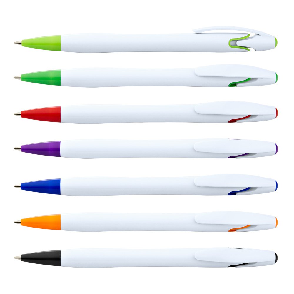Bolígrafo retráctil con cuerpo blanco sólido, punta de color.