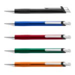 Bolígrafo retráctil con clip y punta plateada, mina tipo Jumbo. En la parte inferior cuenta con grabado que funciona como antideslizante.