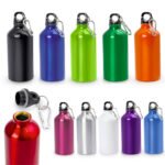 Botella de aluminio con gancho carabinero, tapa rosca. Libre de BPA u otras sustancias nocivas. No retiene ni transmite sabores. Pintura exterior atóxica. Capacidad 500 ml./ 17 Oz.