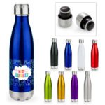 Botella en acero doble pared con tapa rosca. Evita la condensación y aísla las bebidas calientes, ideal para insertar cubos de hielo pequeños y evitar goteos, mantiene las bebidas frías por 24 horas y las bebidas calientes por 12 horas. Capacidad 470 ml. /16 oz.