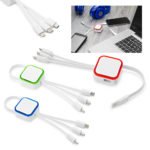 Cable de carga con entrada Mini USB y Conector Dual: Micro USB para dispositivos Andriod y Lightning para Iphone en un mismo puerto. Y conector Tipo-C. Con luz indicadora.