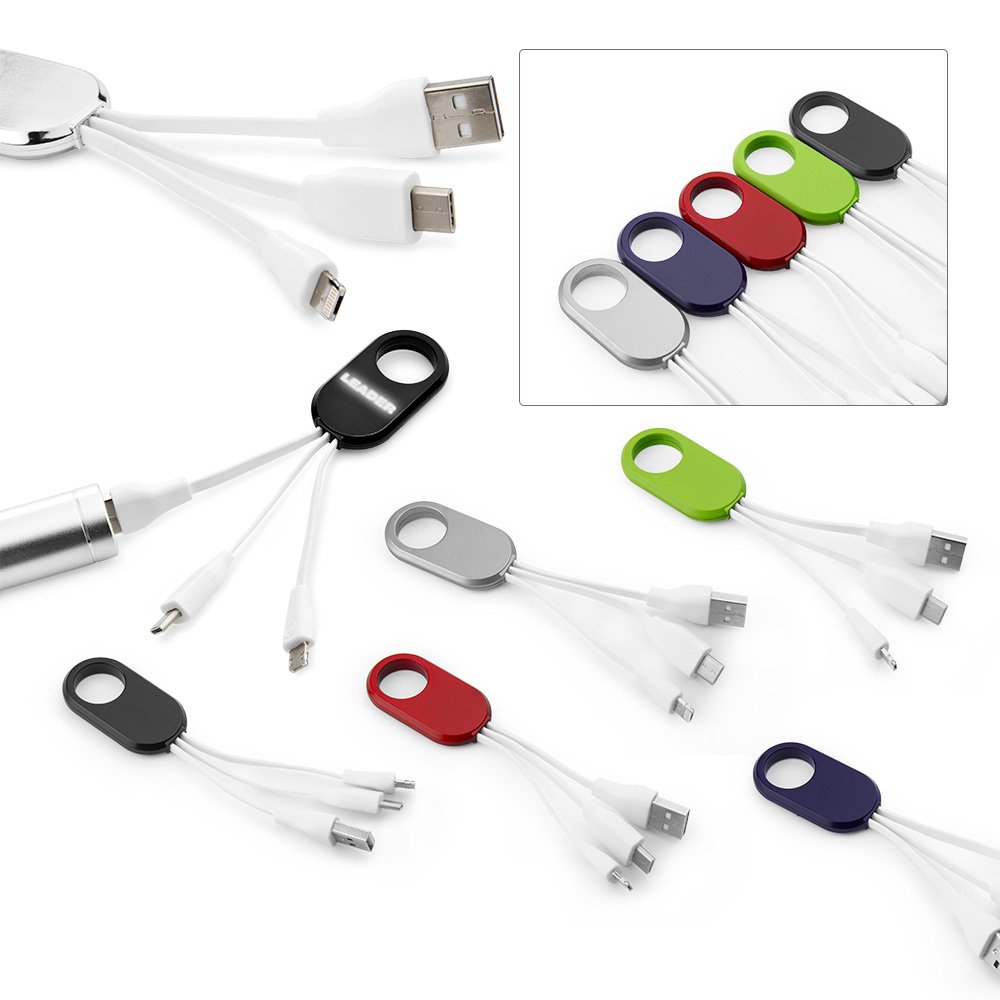 Cable de carga USB con conector Tipo-C y conector Dual: Micro USB para dispositivos Android y Lightning para Iphone en un mismo puerto. Alumbra mientras está conectado.