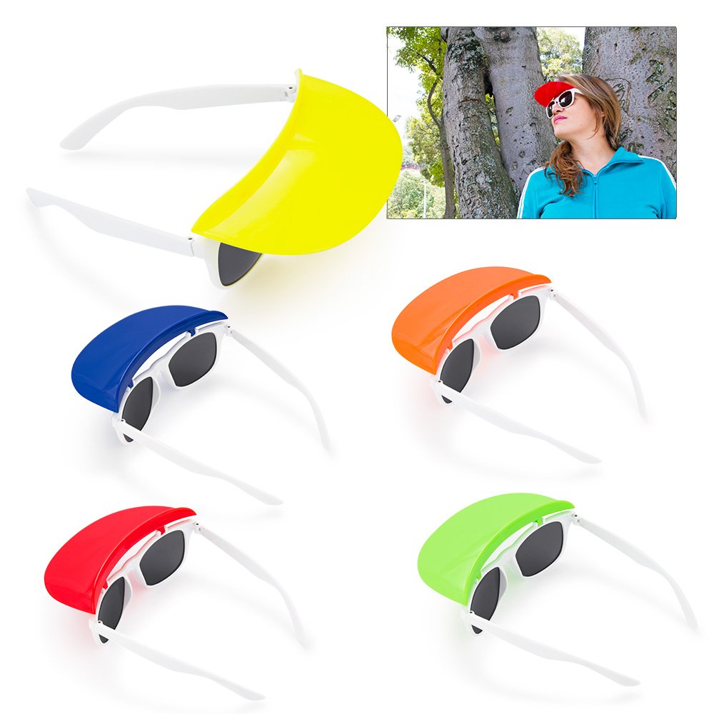 Gafas de sol con visera removible. Marco blanco con visera de diferentes colores. Protección UV400.