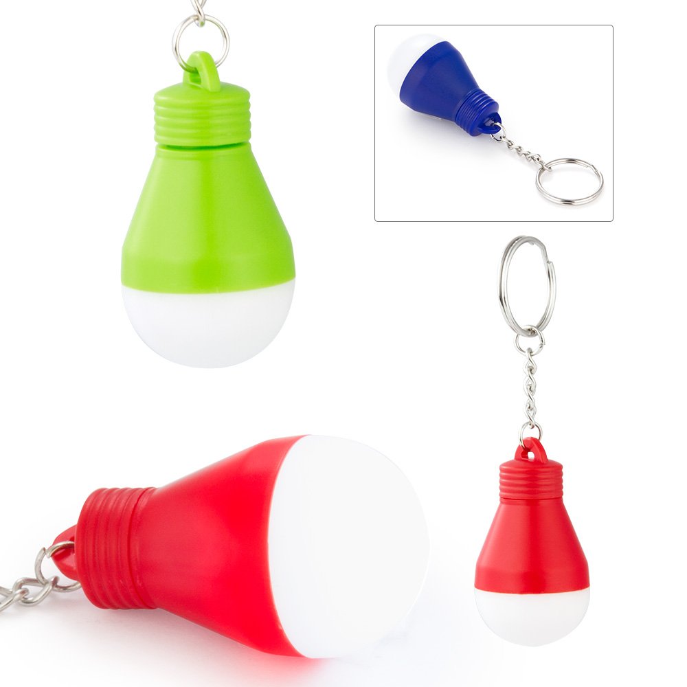 Llavero en forma de bombillo con linterna.