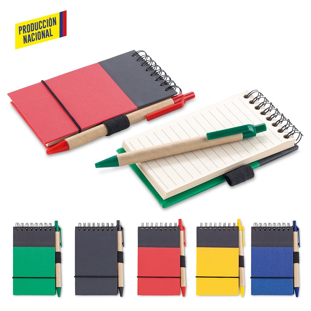 Libreta de 60 hojas con rayas, con bolígrafo. Color especial a partir de 2.000 unidades.