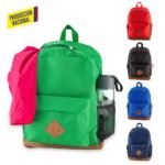 En poliéster, con accesorios en gamuza sintética. Con un bolsillo lateral, malla portabotella y bolsillo frontal. Espaldar acolchado.