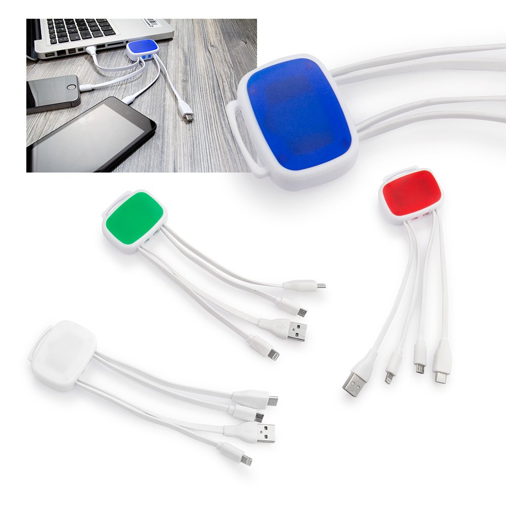 Cable multicargador USB con conector Lightning para Iphone. Micro USB para dispositivos Andriod, tablets, MP3. Y conector Tipo-C.