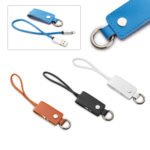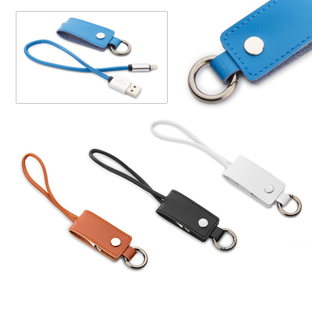 Llavero con cable de carga USB con conector Dual: Mico USB para dispositivos Andriod y Lightning para Iphone desde un mismo puerto. Permite transferencia de datos.