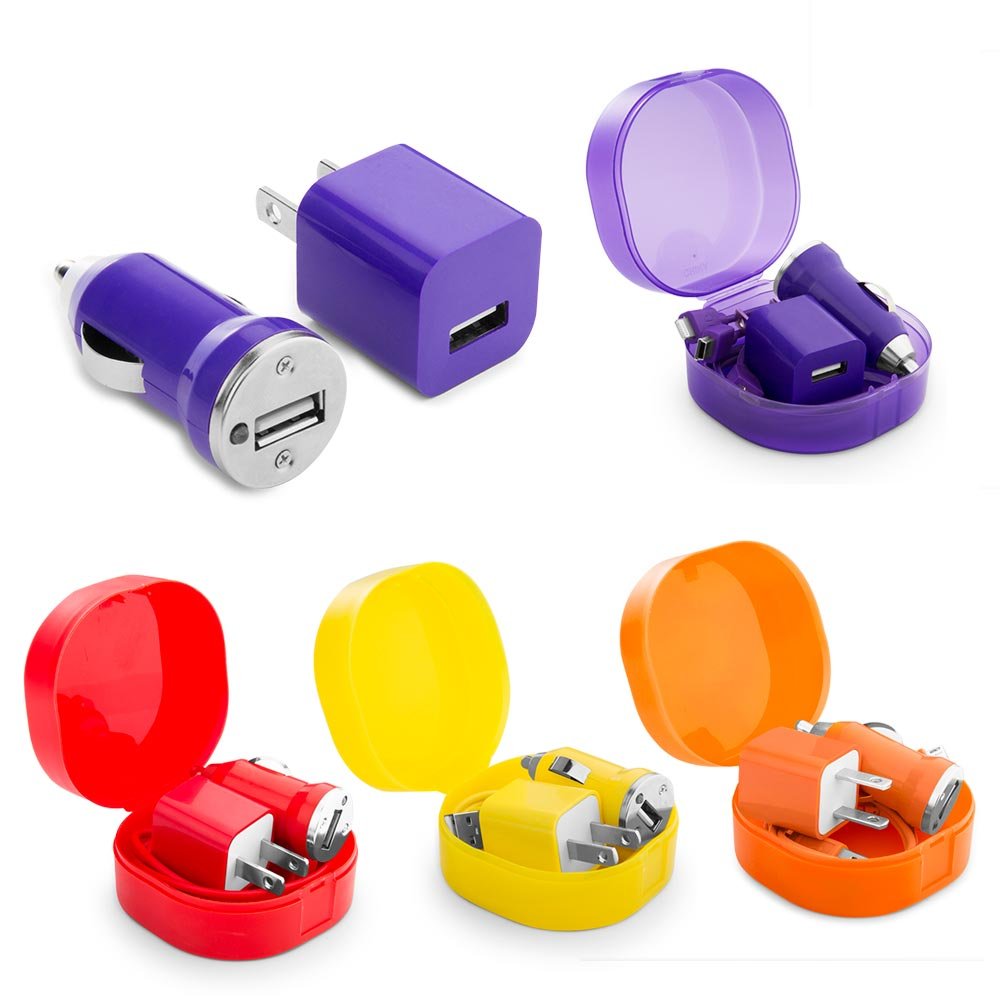 Set de carga que contiene: Cable USB con 3 conectores: Mini y Micro para dispositivos Android y Lightning para IPhone. Cargador USB de carro para celular, apto para cualquier encendedor de auto. Luz LED indicadora de carga. Voltaje de entrada 12-24 VDC. Salida: 500 mA/1 Amp. Cargador de pared con 1 puerto USB, entrada 100-240V – 50/60Hz 0,15A, salida 5V-1A. Cuenta con Certificado de Seguridad UL (E361273). Incluye estuche plástico para transportar fácilmente.