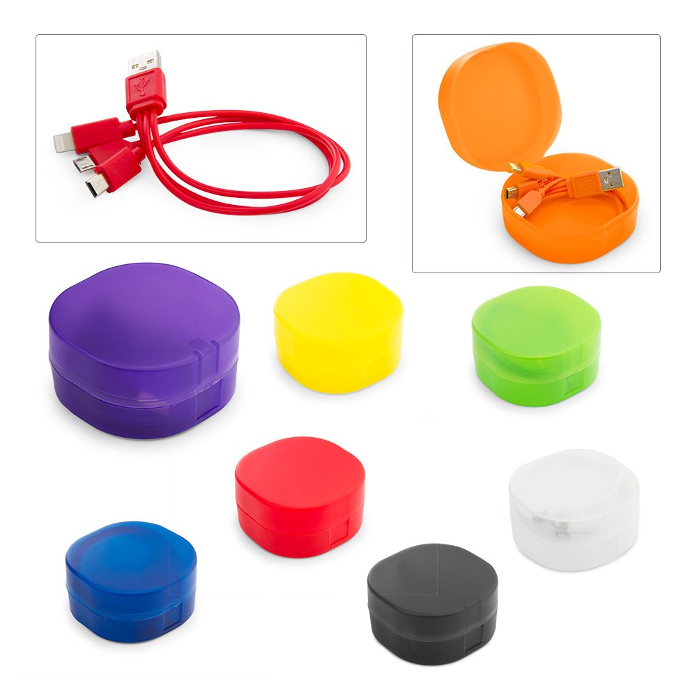 Cable de carga USB con 3 conectores: Mini y Micro para dispositivos Android. Lightning para IPhone. Viene en estuche plástico para transportar fácilmente.
