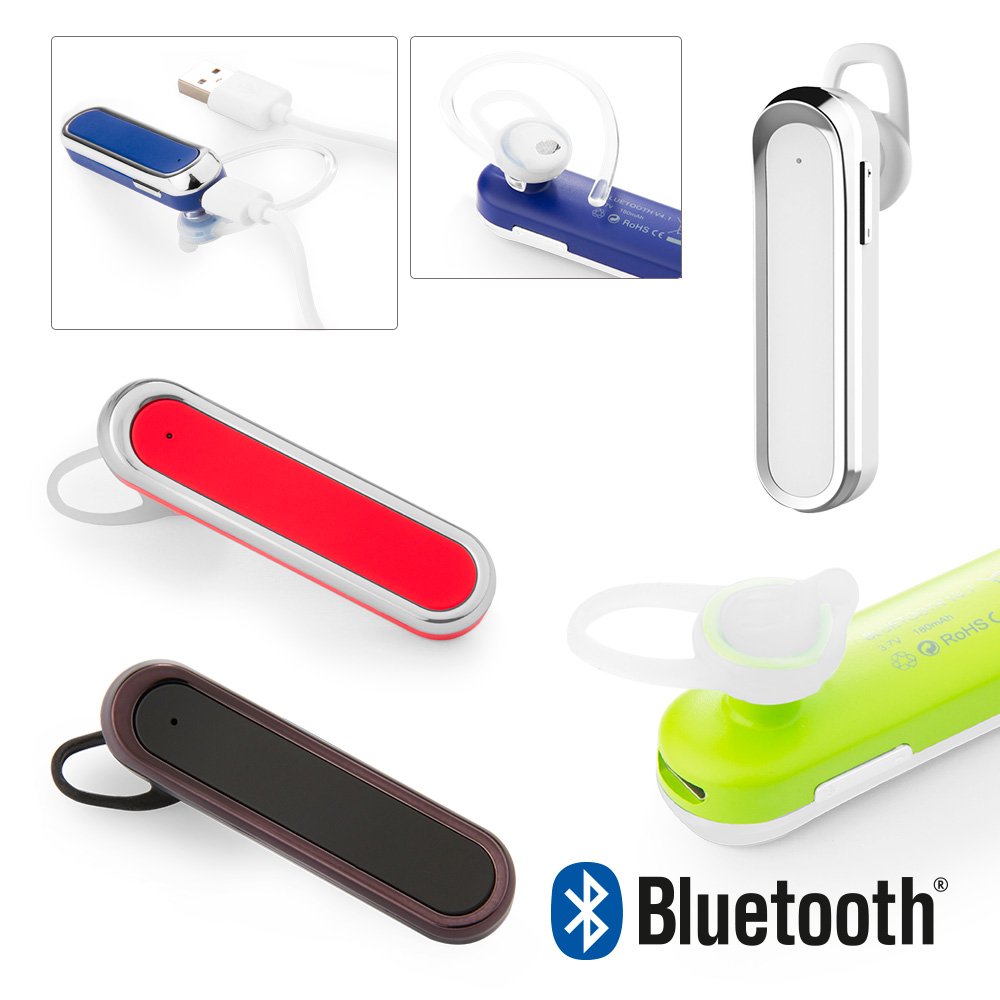 Manos libres Bluetooth V4.1. soporte bluetooth: A2DP, AVRCP, HSP, HFP, S/N: >90dB, frecuencia de respuesta 50Hz-20KHz, Tiempo de carga 2.5 horas, salida DC5V, rango máximo de distancia 10 m, frecuencia 2.402GHz-2.480GHz. batería de litio 3.7V/180mAh. Incluye luz indicadora LED, cable de carga USB/micro USB.
