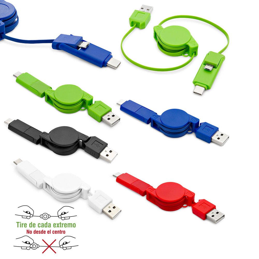 Conector multiple tipo yoyo. Conector Tipo-C y conector Dual: Micro USB para dispositivos Andriod y Lightning para Iphone en un mismo puerto. Permite transferencia de datos en dispositivo móvil.